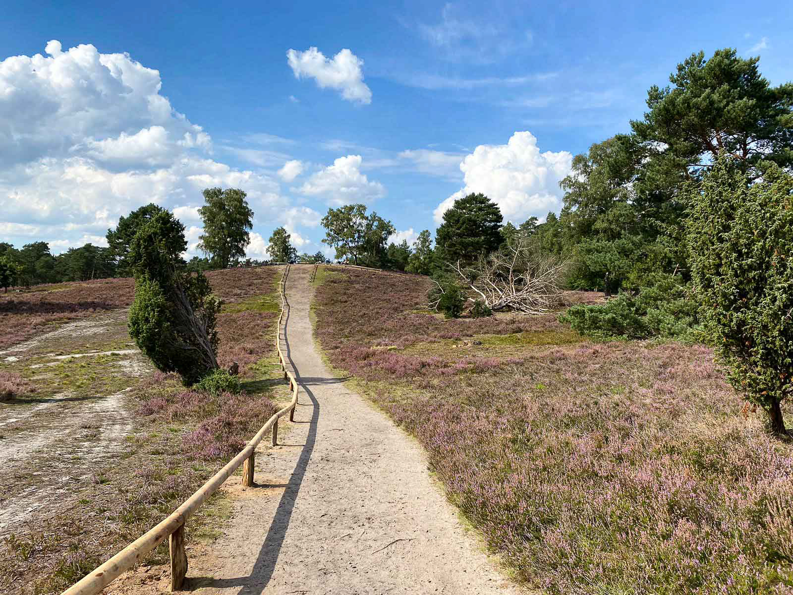 Ab dem Parkplatz wandert ihr entlang des kleinen Büsenbaches, bis sich eine weitläufige Heidelandschaft mit Wacholderbüschen kleinen Birken und ganz viel Heidekraut öffnet. Zahlreiche Bänke und Steine am Bachlauf laden ein, die Seele baumeln zu lassen und einfach die wunderschöne Naturlandschaft zu genießen.