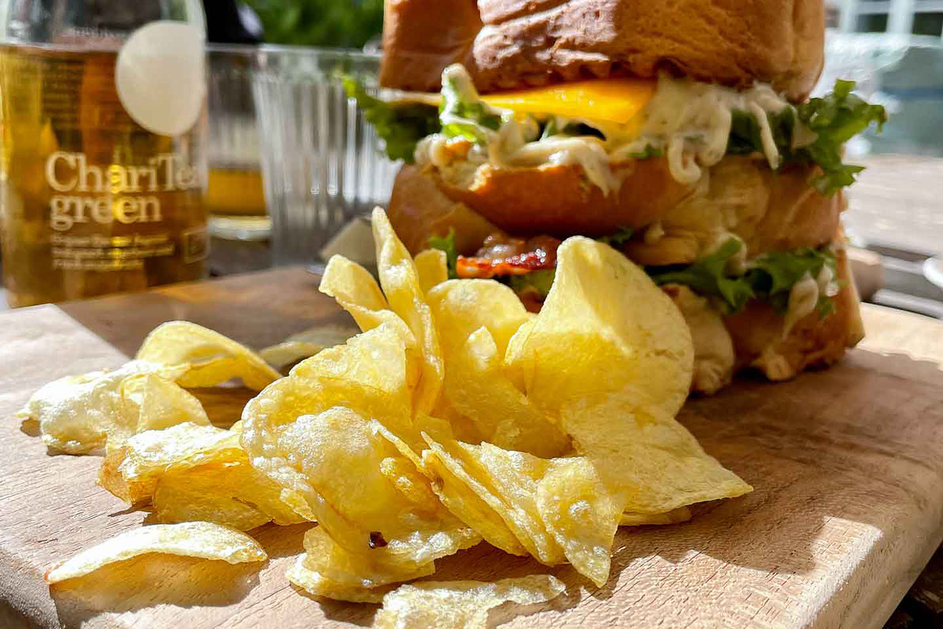 3. Für uns da absolute Oberhighlight – und wir zitieren jetzt einfach mal aus der Speisekarte: „Club-Sandwich: Dreistöckiges Brioche-Toast belegt mit buttery smoked Bio-Turkey, Cheddar, knusprigem Bacon, Tomaten, frischem Basilikum, Salatherzen und Dijon-Senf-Mayo“. Ich denke, damit ist alles gesagt.